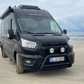 Wir haben den Sonntagmorgen für ein Fotoshooting am Stand genutzt und ein paar schöne Fotos von unserem Oscar gemacht. Wann hat man schon mal die Gelegenheit mit dem eigenen Fahrzeug so dicht auf den Strand und an die See zu kommen.