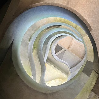 Gefühlt besteht das ganze Gebäude von innen aus einer riesigen Stahlbetontreppe. Sicherlich statisch relevant. Alles Andere wurde an diese Treppe anbetoniert...